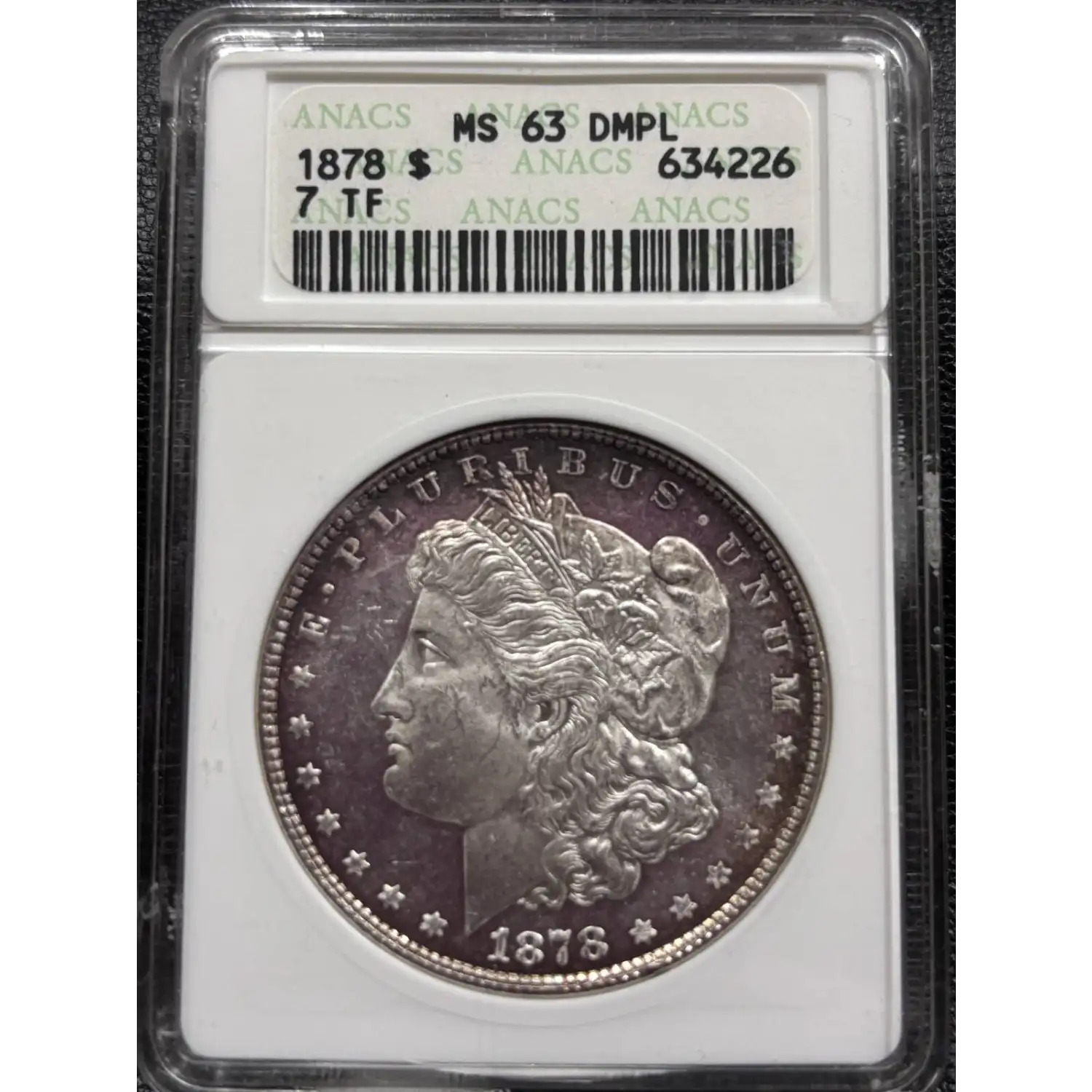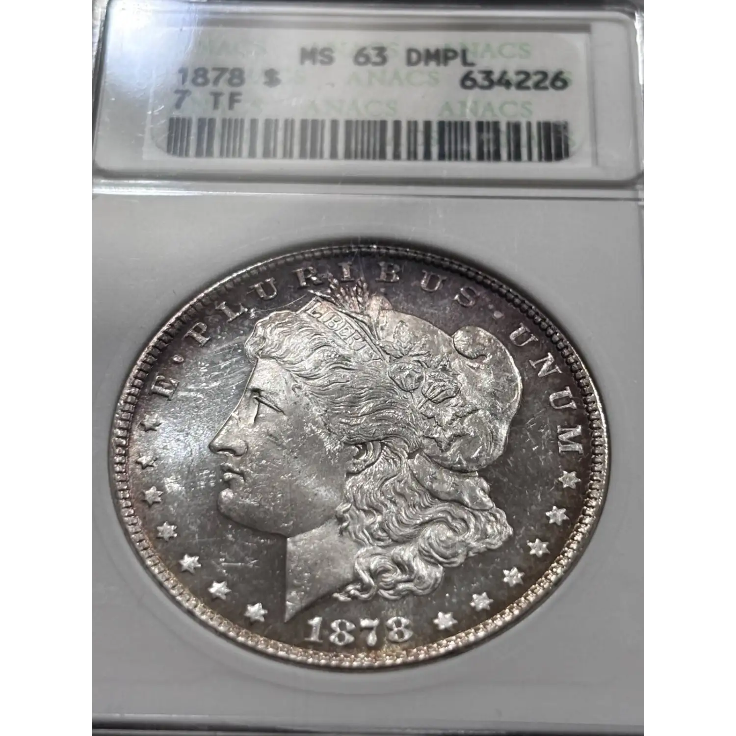1878 Morgan Silver Dollar ANACS MS-63 7TF DMPL