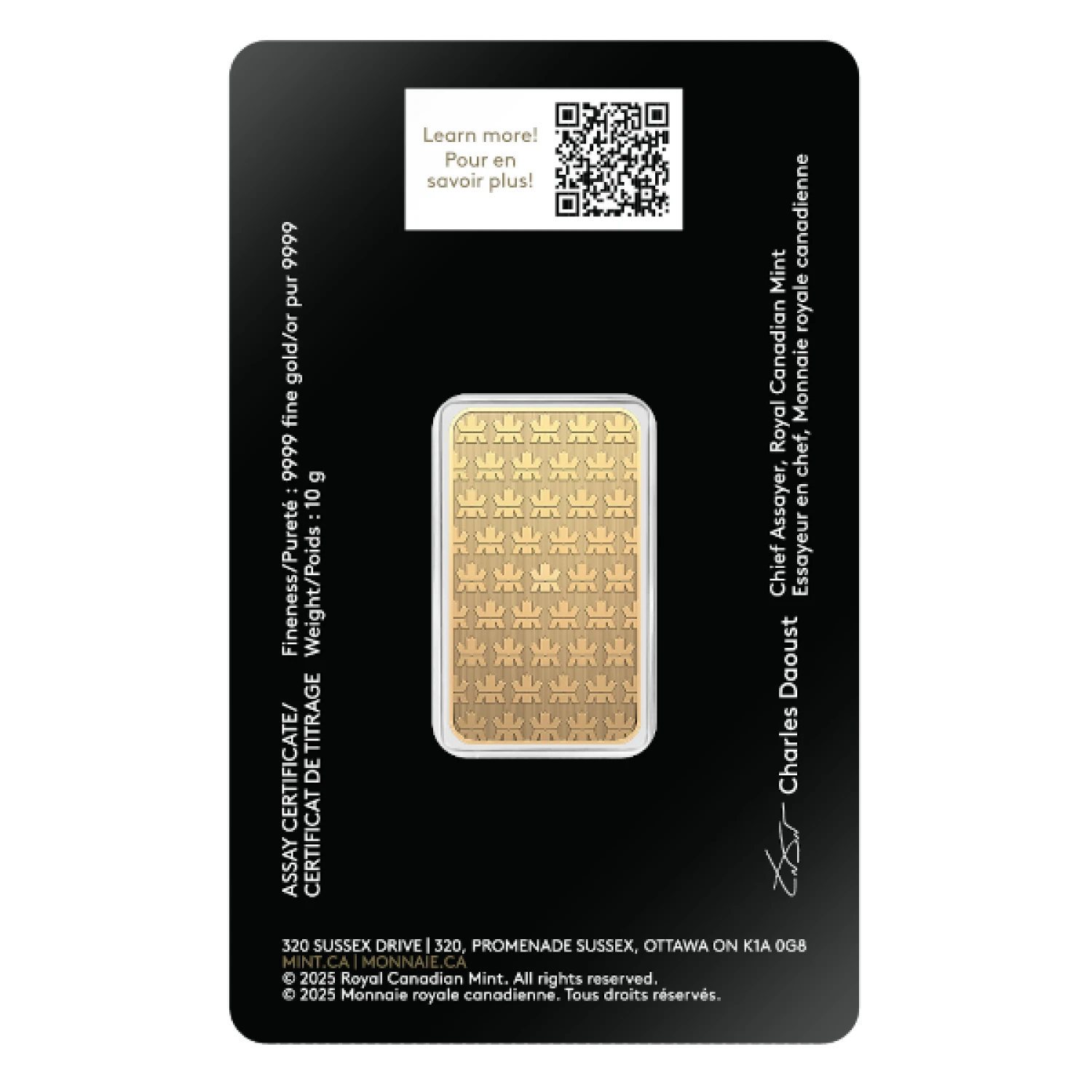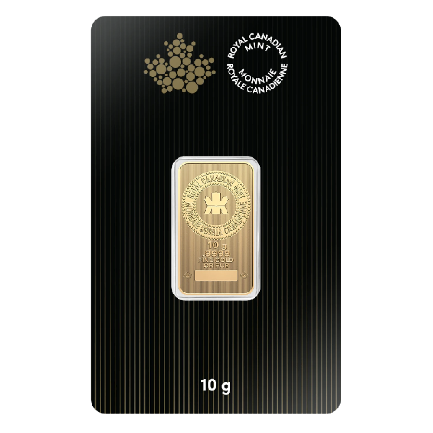 Discover the RCM 10g Gold Bar, a captivating addition to your precious metal portfolio. Crafted with uncompromising quality by the renowned Royal Canadian Mint, this bar offers a unique blend of beauty, purity, and investment potential.