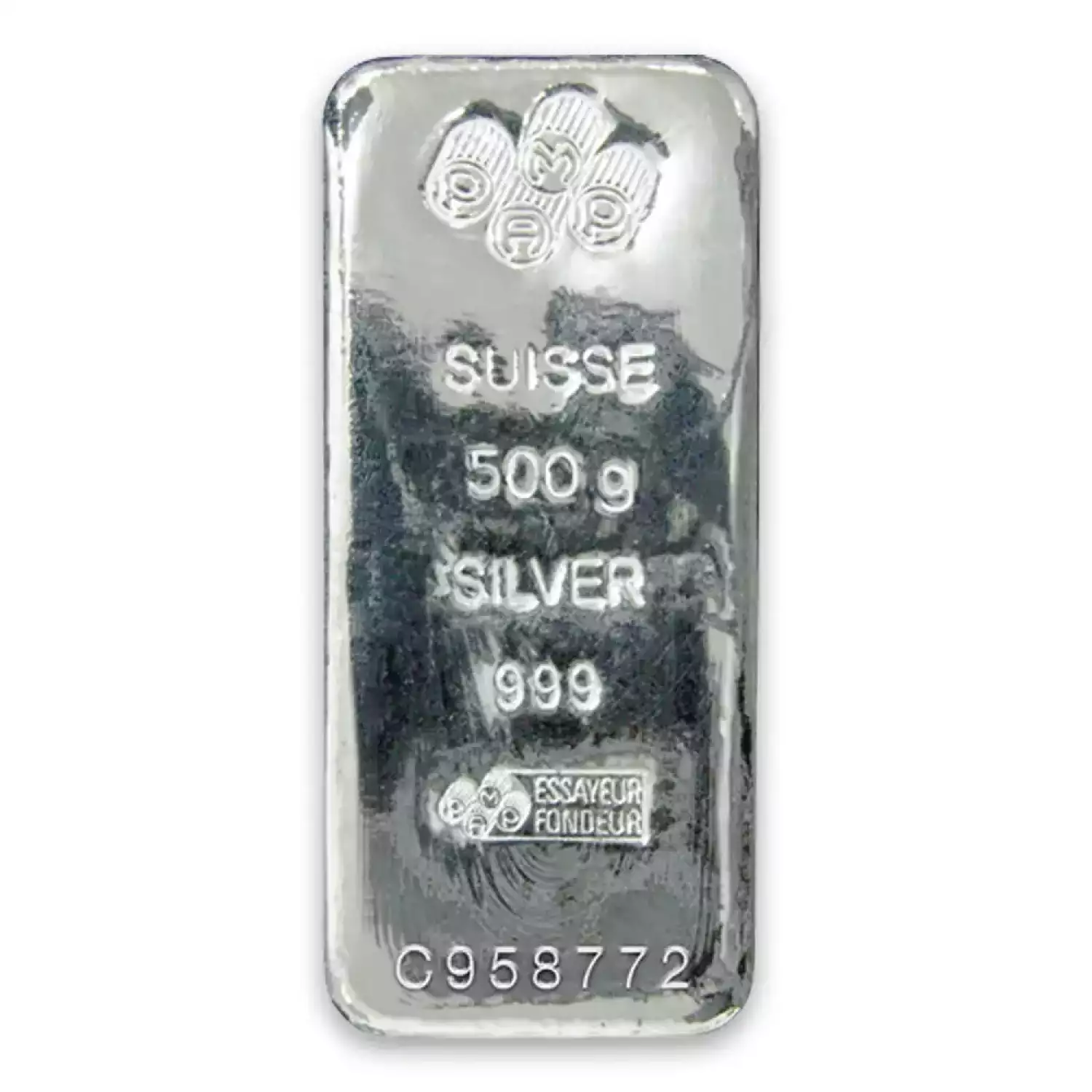 Each 500g PAMP Silver Bar is composed of 500 grams of .999 fine silver. Silver bars and silver coins may tend to tarnish over time depending upon the environment they are stored.