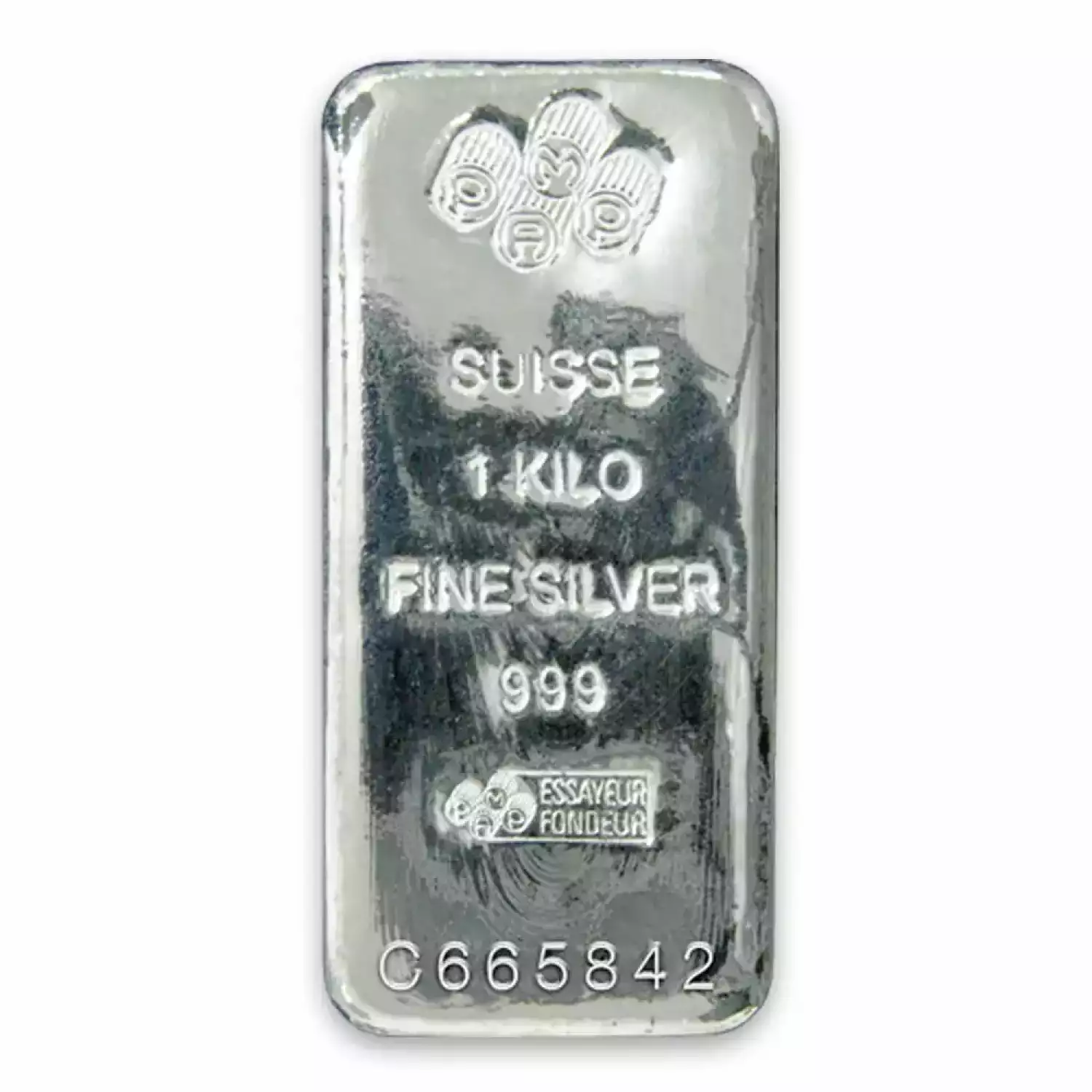 Each 1 kg PAMP Silver Bar is composed of 1 kilogram of .999 fine silver. The spot price of silver tends to be more volatile than the spot price of gold and is one of the reasons that both silver premiums and spreads tend to be wider for silver coins and silver bars.