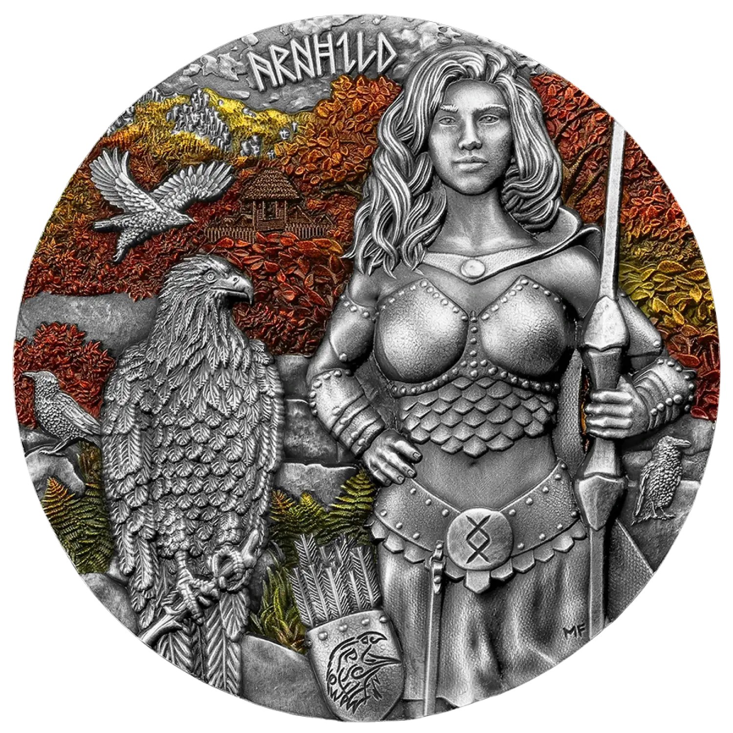 Made from .999 fine silver, the 2025 Arnhild coin weighs an impressive 2 ounces, making it a substantial piece for both collectors and investors alike. The depiction of Arnhild, a warrior maiden who chose those who may die and those who may live, is beautifully rendered and provides a striking visual that stands out among other silver coins. With limited mintage and a commitment to quality, this coin not only serves as a piece of art but also as a reliable asset in today’s market.